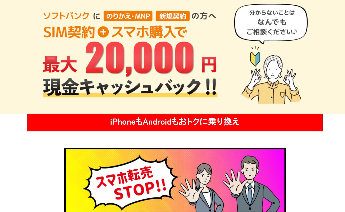 「ケータイ乗り換え.com」は、ソフトバンクの携帯電話契約を専門に取り扱う正規取次サービスです。公式オンライン窓口として、条件を満たした申し込みを行うことで、店頭では実現しにくい高額な現金還元を実施しています。