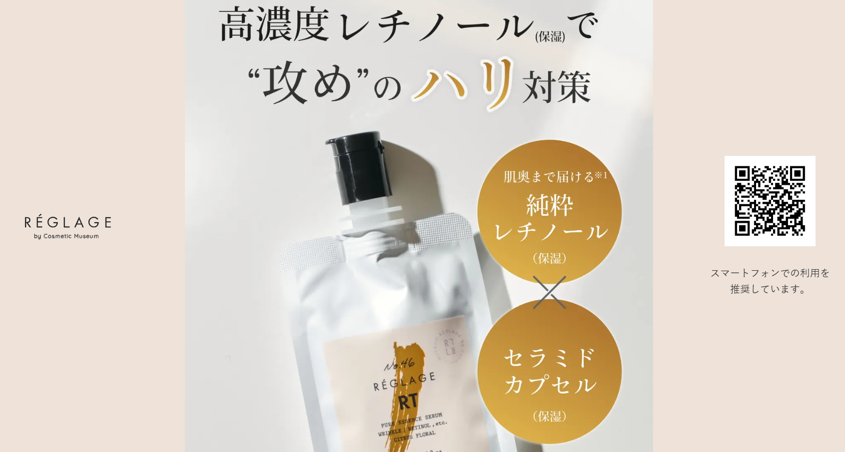 No46.ピュアRTセラムは、ただレチノールを配合しているだけではありません。長年の研究で培われた技術により、レチノールの安定性と浸透性を高め、角質層のすみずみまで行き渡るよう設計されています。