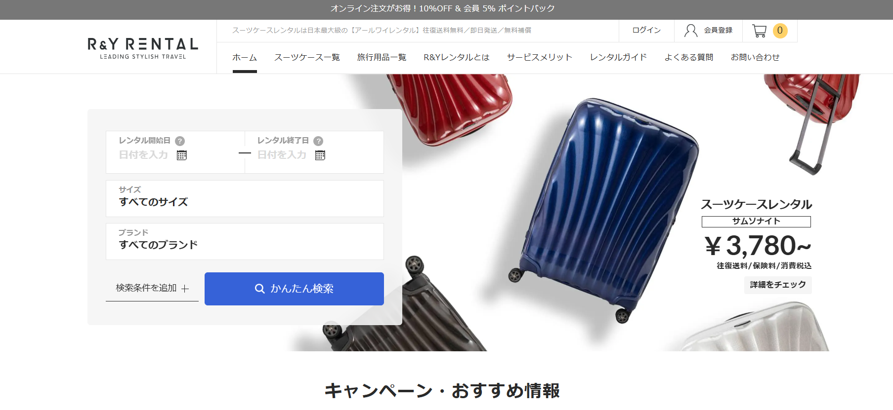海外旅行や国内出張、帰省や長期滞在など、移動の多いシーンで必ず必要になるスーツケース。しかし「年に数回しか使わない」「サイズ選びに失敗したくない」「保管場所がない」といった理由から、購入をためらう方も多いのではないでしょうか。そんな悩みを一気に解決してくれるのが、日本最大級のスーツケースレンタルサービス【アールワイレンタル(R&Y Rental)】です。