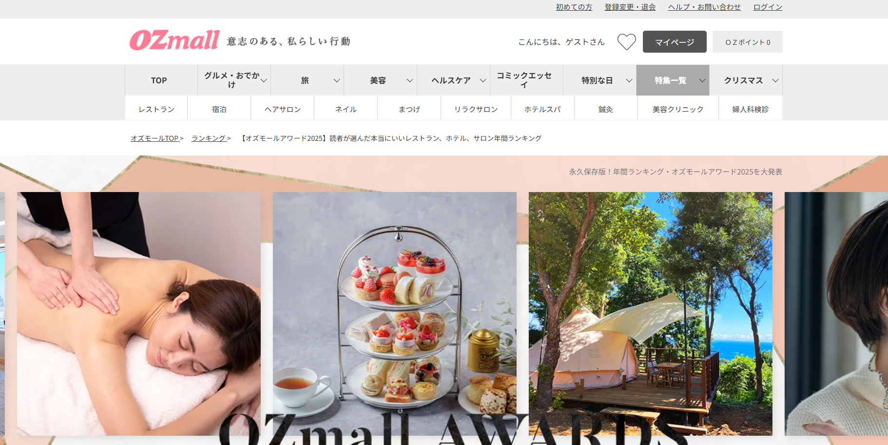OZmallは、編集部が実際に取材・厳選したレストランやホテル、スパ・エステ、ビューティーサロンなどを、お得な限定プランで予約できる人気のライフスタイル予約サイト。