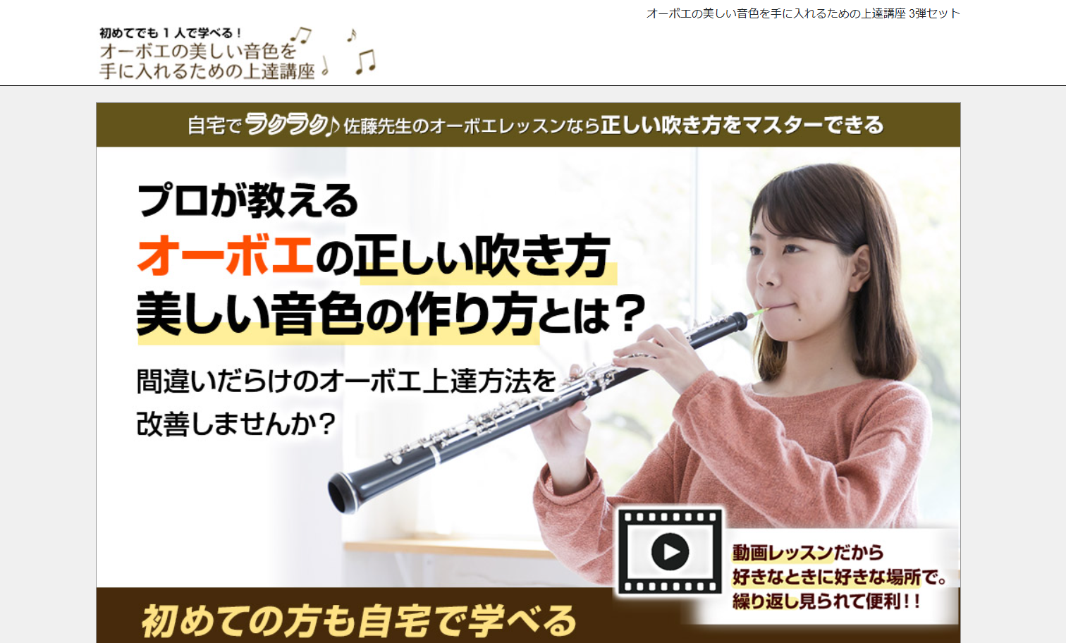 マナビーノ「オーボエの美しい音色を手に入れるための上達講座【初心者向けオーボエ教本&DVD 3弾セット】」です。